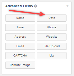 Step 1: Create a form and select the “Date” option to add a date field. You will find this option under the ADVANCED FIELDS section.